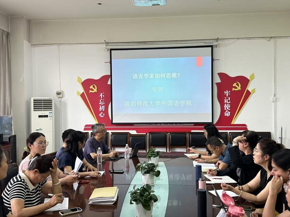 6月25日,外国语学院邀请陕西师范大学外国语学院博士生导师张韧教授作题为“语言学家如何思维?”的学术报告。院长李海荣及学院全体博士(含在读),以及相关领域骨干教师参与了本次学术交流。会议由副院长李军胜主持。